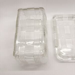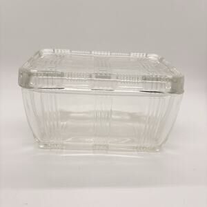 This is a vintage Vintage Hazel-Atlas Refrigerator Dish with a Criss Cross pattern. It Is Clear Glass.