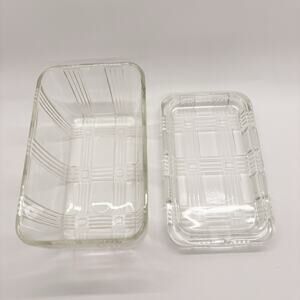 Vintage Hazel Atlas Refrigerator Dish Criss Cross Lid Clear Glass SEE PICs 6"