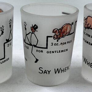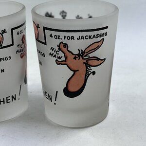 Vintage Hazel Atlas Shot Glasses Frosted Say When Rabbits Jackasses Set Of 3