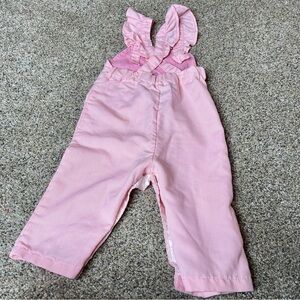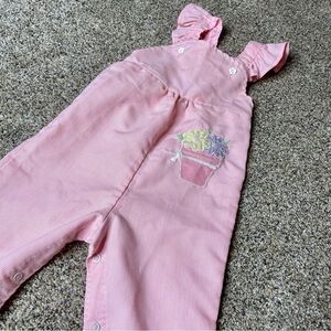 Vintage Health-tex Romper One Piece Pinstripe Pink White Floral Ruffle 24M USA
