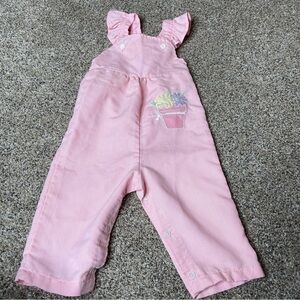 Vintage Health-tex Romper One Piece Pinstripe Pink White Floral Ruffle 24M USA.