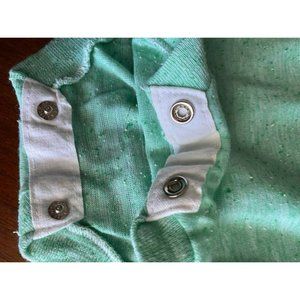 Great little vintage Healthtex romper in green with NUMERO UNO lettering and stripes in green and white. 12m. Perfect for spring, summer, St Patrick’s Day or sporting occasions. Permanent Press.