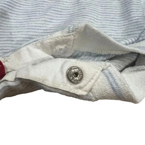 Wrap your little one in the cozy charm of this Health-tex blue sporty onesie in size 6-9 Months. Perfect for any adventure, this unisex piece is designed to keep your child snug and stylish. The soft blue hue adds a touch of calm to their wardrobe, making it a versatile choice for any outing. Made in the USA, it promises quality and comfort. Please note that it is pre-owned and has a missing snap, as shown in the photo.