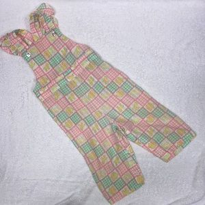 Vintage Healthtex patchwork print ruffle strap overalls 18m