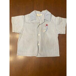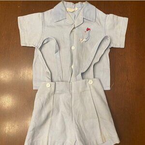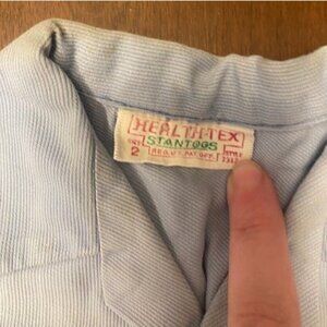 Baby blue 1950's health tex set. Buttons still in tact and functional. Wash wear and some discoloration due to age but otherwise in great condition!