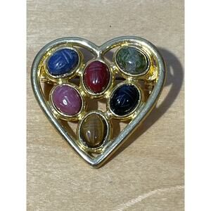 Vintage Heart Brooch Lot of 2 Gold Tone Scarab Jewels Romantic