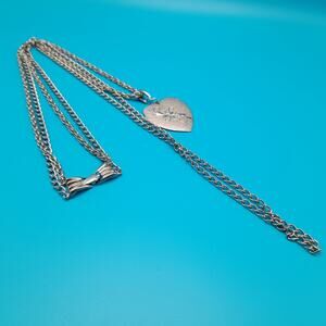 Vintage Heart Layered Long Necklace, Etched Pendant, Silver Tone, 25"