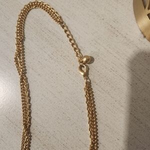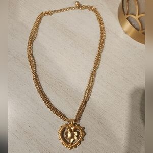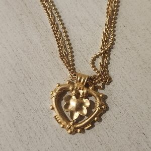 Beautiful vintage piece! Heart pendant triple chain vintage gold necklace. Approximately 10 inches. Clasp closure. Fantastic condition!