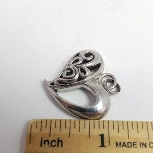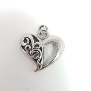 Vintage Heart Pendant Charm, Scroll Open Work Design, Silver Tone, Estate