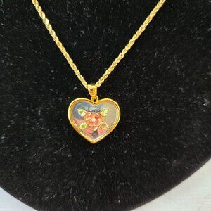 Vintage Heart Rose Pendant Genuine peridot and Diamond for Sisters Danbury Mint