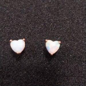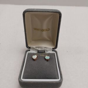 Vintage Heart Shaped Fire Opal Earrings Gold Studs #J048