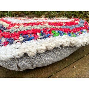 Vintage Heart Shaped Rag Rug Accent Pillow Farmhouse Primitive Red White