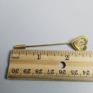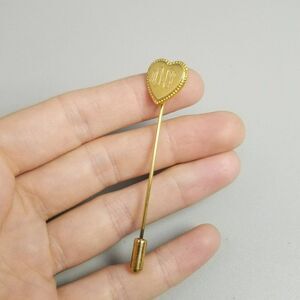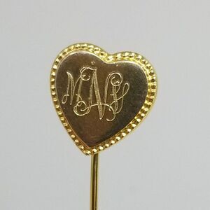 Vintage Heart Stick Pin Engraved Monogram M.N.V. Gold Tone Brooch, Estate