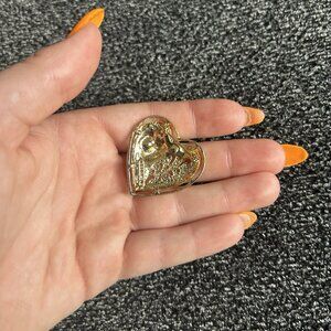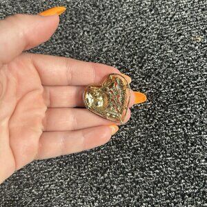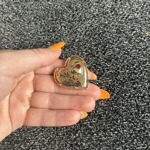 Show your love with this beautiful vintage Gerry's brooch pin. The heart shape and red faux ruby stone make it a perfect accessory for Valentine's Day, anniversaries, or birthdays. The gold tone and mixed materials add to its unique beauty. This fashion jewelry piece is signed by the brand and features intricate art and love themes. Perfect for anyone who appreciates beauty and vintage jewelry.