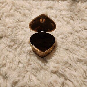 This vintage brass trinket box, shaped like a heart, adds a nostalgic touch to any collection. Ideal for storing small keepsakes or jewelry.