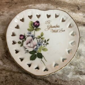 Vintage Heart-Shaped Porcelain Dish with Floral Design