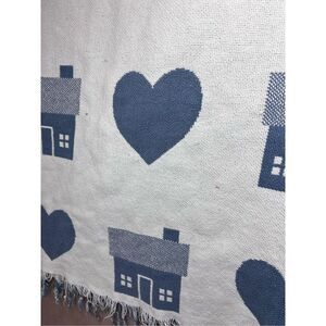 Vintage Heart Tapestry Throw Blanket Blue and White Cottagecore