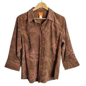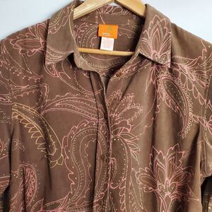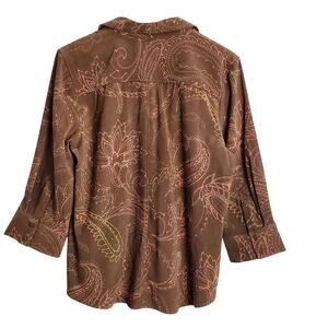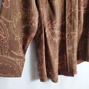 Vintage Hearts of Palm Blouse Womens Size 14 Brown Y2K Paisley Floral Boho Retro