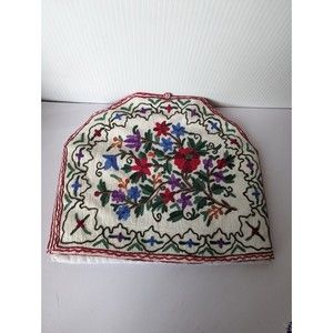 Vintage Heavily Embroidered Tea Pot Cozy Floral Thickly Padded Liner Hand Made