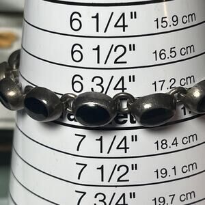 Add this chunky gothic punk piece to your sterling collection! Vintage MEXICO Heavy 925 Sterling Silver and Onyx Cabochon Stone Bracelet, toggle closure. Size in photo on bracelet measure. Gorgeous patina can be left on or polished away to a brighter shine.