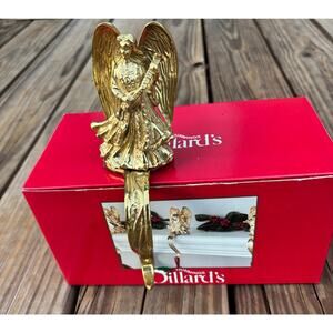 Dillards Vintage Heavy Brass AngelChristmas Holiday Stocking Long Hanger Hook ORNATE 8" x 3.5" NWT