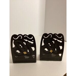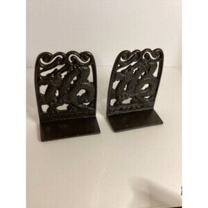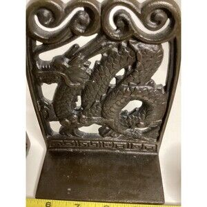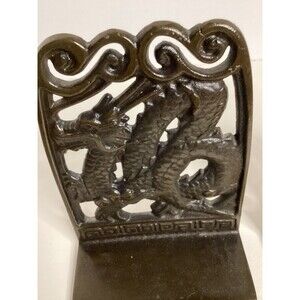 Vintage Heavy Cast Metal Open Work Dragon Bookends Japan Old Ornate