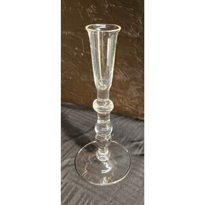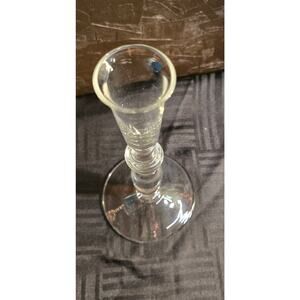 Add a touch of vintage charm to your home with this beautiful, heavy, clear glass candle holder! Its timeless design and sturdy construction make it a perfect addition to any room.