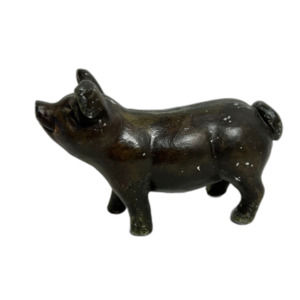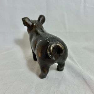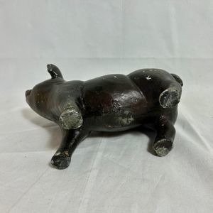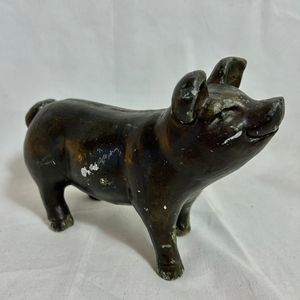 Vintage Heavy Concrete Farmhouse Pig Statue Figurine Dark Brown. He has some scratches and a chip on his foot as shown in the pictures. Overall he is a really nice vintage pig with lots of charm. The flaws just add to his vintage character. I believe he should stay inside as I think his paint would wear off outside in the weather.