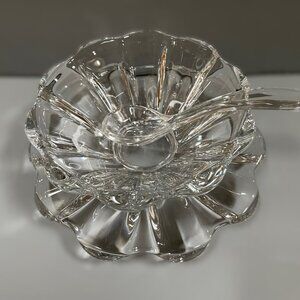 Vintage Heavy Glass Condiment or Sauce Bowl with Base Plate and Spoon
