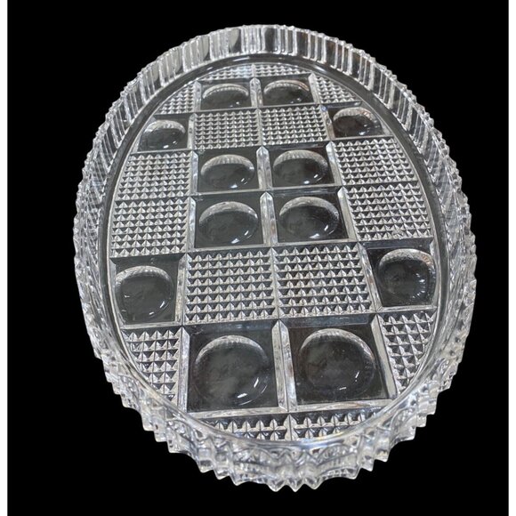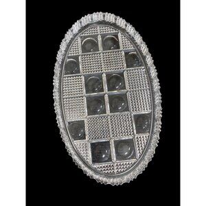 Vintage Heavy Glass Oval Serving Relish Trinket Tray