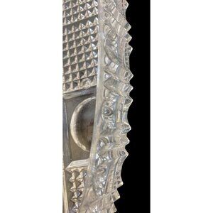 This Vintage Heavy Glass Oval Serving Relish Trinket Tray is a clear, 12" x 7" x 1.5" tray perfect for serving, displaying trinkets, or as a decorative piece.