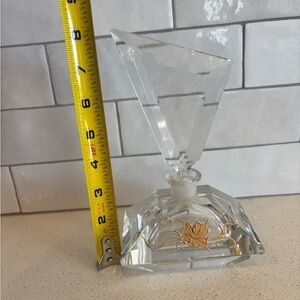 Vintage Heavy Lead Cut Crystal Perfume Decanter Bottle with Dauber Gold Flower