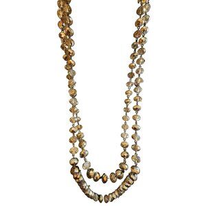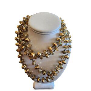 Vintage Heavy Linked Long Copper Coated Heavily Faceted Crystal Necklace (A1776)