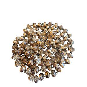 This vintage necklace features a long, heavy copper-coated chain adorned with intricately cut and heavily faceted crystal beads. A loop-over style that can be worn long or doubled up.
