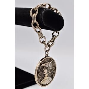Vintage Heavy Medallion Coin Charm Bracelet Roman Knight Medieval 1960s BinAD