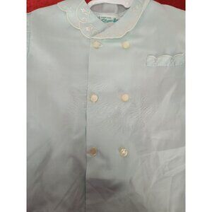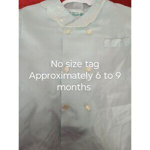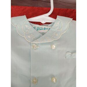 baby boy outfit, light blue gown, Heffman Bros, double-breasted gown, baptism outfit, embroidered collar, pearl buttons, vintage fashion, baby gown, classic baby outfit, vintage christening gown, hand embroidered dress, vintage baby clothing