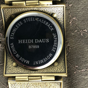 Vintage Heidi Daus Watch Byzantine Gold Tone Bracelet Roman Numerals Museum Quality Watch with Hundreds of Faceted & Cabochon Crystals, Set in a antique Gold Tone Metal Bracelet 5 Main sections & extra Link.