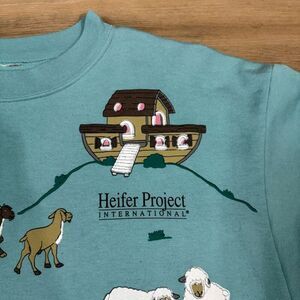 Vintage Heifer Project Size L Noahs Ark Animals Crewneck Sweatshirt Blue 90s