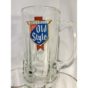 Enjoy a touch of nostalgia with this set of 3 vintage Heileman's Old Style heavy glass beer mugs, each measuring 5 3/4 inches tall. These classic mugs are perfect for beer enthusiasts, collectors, or anyone looking to add a retro feel to their barware collection.