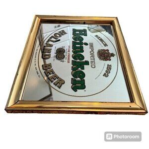 Vintage Heineken Mirror Glass Gold-Tone Metal Frame Signage Bar 16.5" x 13.5"