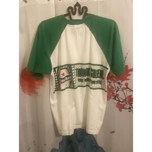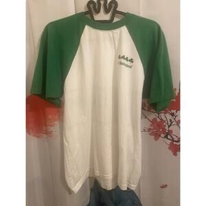 Note: Rare officially licensed Heineken tee. Crazy nice color block with green and white colors and a clover design.