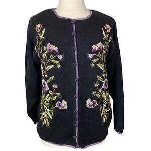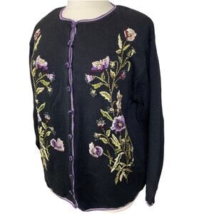 Vintage Heirloom Collectables Embroidered Floral Cardigan Sweater