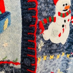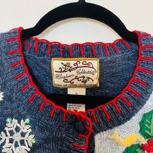 Vintage Heirloom Collectibles Christmas Cardigan Sweater Large Blue Snowmen