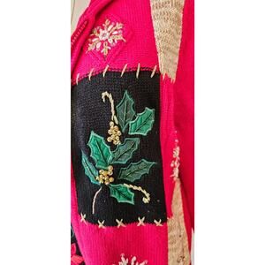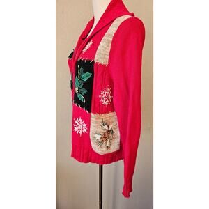Vintage Heirloom Collectibles Christmas Cardigan Sweater Poinsetta Grandma L Pet