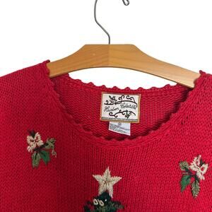 Vintage Heirloom Collectibles Embroidered Christmas Tree Sweater Bows Size M