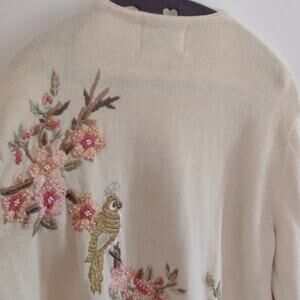 Vintage Heirloom Collectibles Embroidered Cream Floral Bird Cottagecore Cardigan