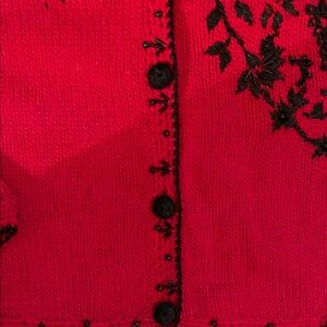 Vintage Heirloom Collectibles Red Cardigan with Black Accents Size PM