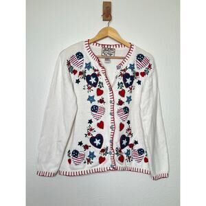 Vintage Heirloom Collectibles Sweater Cardigan Embroidered Americana Size Small
