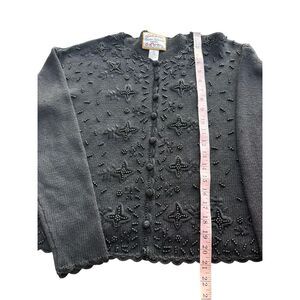 Vintage Heirloom Collectibles black beaded cardigan sweater Size M. It’s in excellent vintage condition.