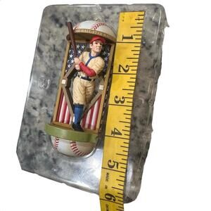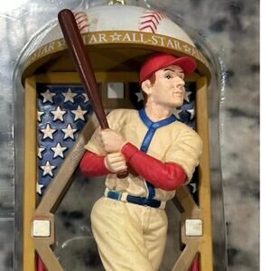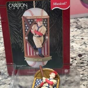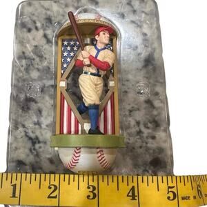 Step up to the plate with this vintage Carlton Cards 1998 Grand Slam Greetings Musical Ornament from the Heirloom Collection 10th Anniversary! This ornament features a classic baseball player and is perfect for any sports fan’s Christmas tree.